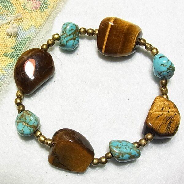 ●新品 ●天然石、タイガーアイとトルコ石のストレッチブレスレット ゴムひもでストレッチします きれいなアイテムです