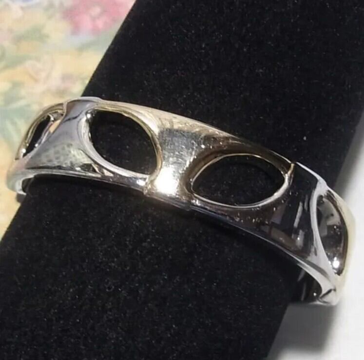 ●1990-2000’s ●コンビカラーメタルのクランパーブレスレット 金と銀のコンビカラーメタル がっしりタイプの光沢メタル スタイリッシュでオシャレなアイテムです ◆年代は当店の推定です。