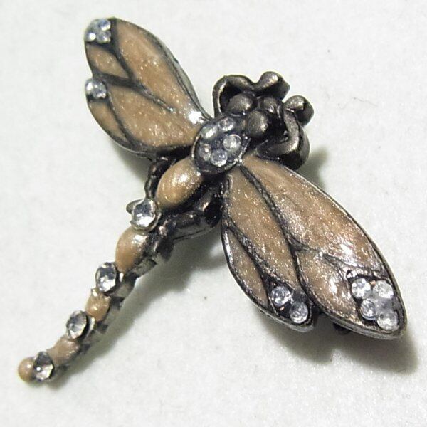 ●オールドストック新品 ●トンボのブローチ 黑いメタルにエナメル クリアなラインストーン シックな色合いのクールなアイテムです