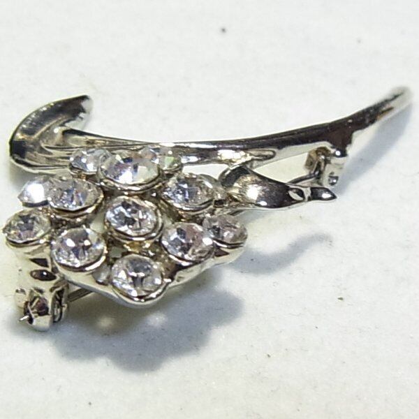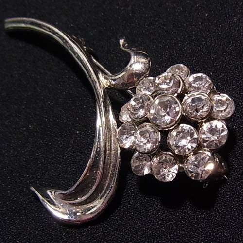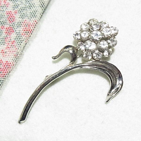 ●1990s ●フラワーブローチ クリアなラインストーン シルバートーンのメタル製 きれいです ◆年代は当店の推定です。