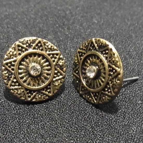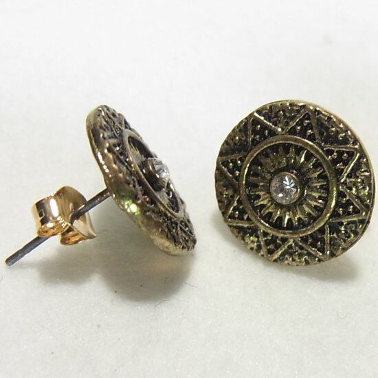 ●オールドストック新品 ●ラウンドスタッドピアス クリアなラインストーン シックな色合いのゴールドトーンメタル