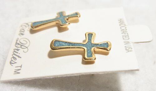 ●1990ー2000s ●クロスのピアス トルコ石のかけら埋め込み ゴールドトーンのメタル製 スタイリッシュでオシャレ オールドストック品 アレルギー対応はしておりません
