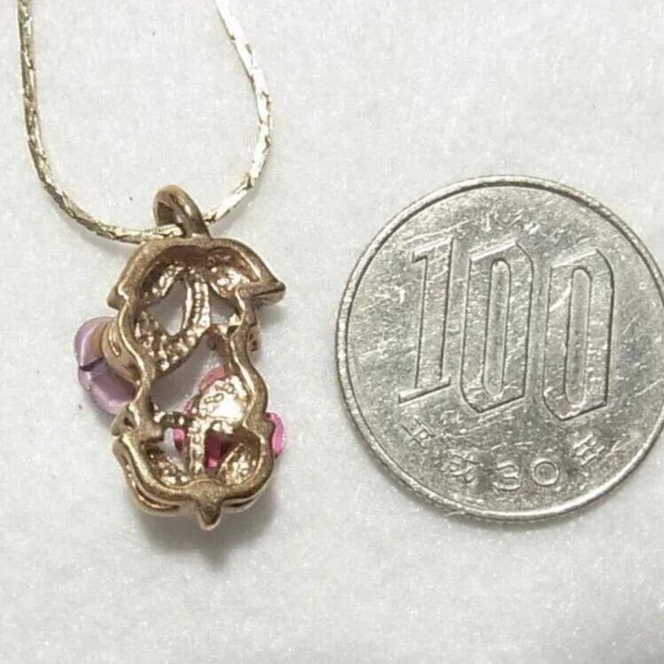 ●1990-2000’s ●フラワーペンダントネックレス ゴールドトーンのメタル製 ピンクとラベンダーのエナメル クリアなラインストーン 46cmチェーン きれい、プリティ ◆年代は当店の推定です。