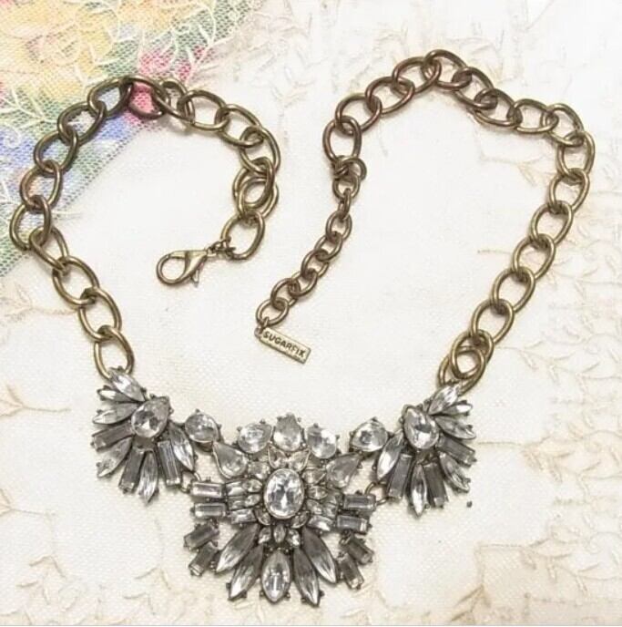 ●オールドストック新品 ●刻印:SUGARFIX ●ラインストーン・ブロンズメタルのエレガントネックレス 49cm 存在感のあるオシャレなボリュームネックレスです