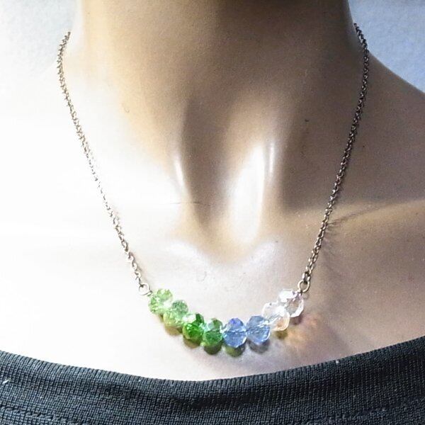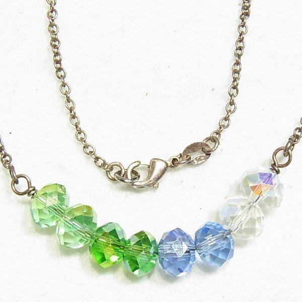 ●2000s ●黄緑、ブルー、クリアのファセットカットのガラスビーズのネックレス シルバートーンのメタルチェーン 46cm 気品あるオシャレなアイテムです ◆年代は当店の推定です。