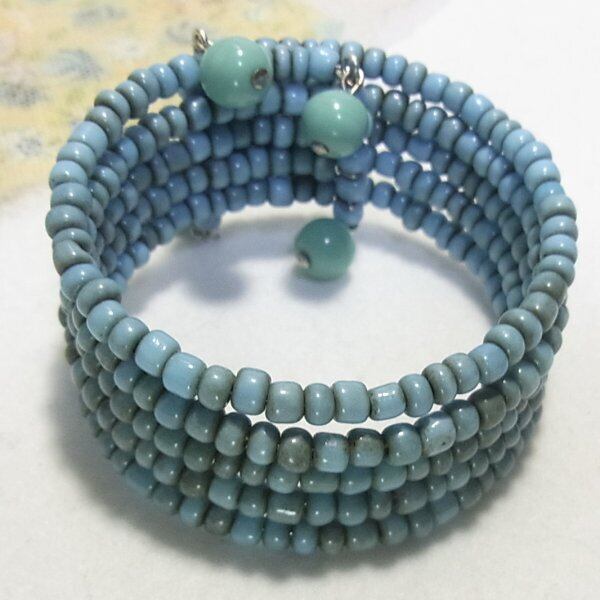 ターコイズ色のガラスビーズ製ストレッチブレスレット コスチュームジュエリーのセール通販 10485BR