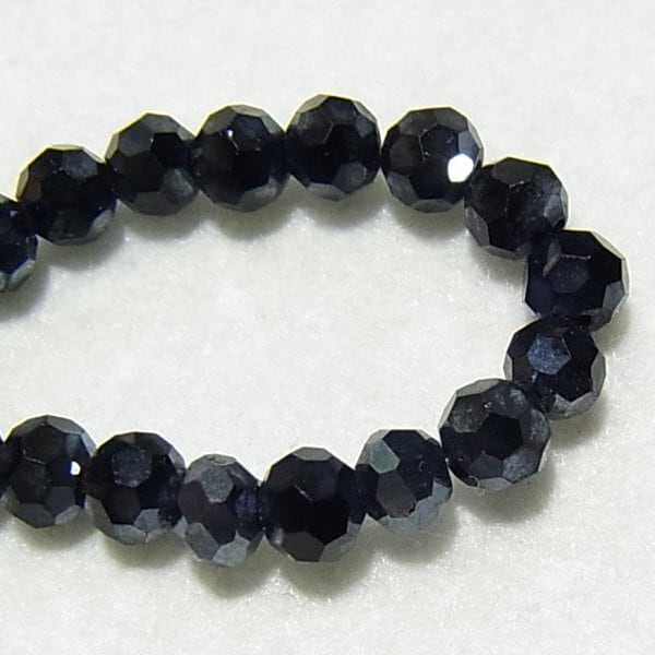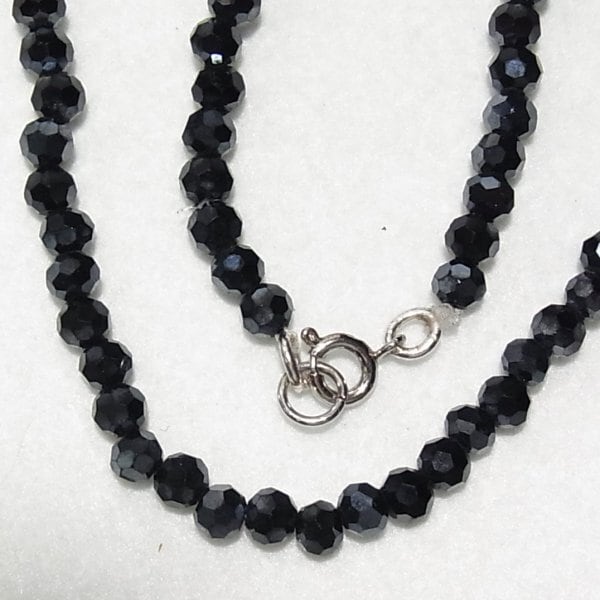 ●2000’s ●濃紺色のガラスビーズのチョーカーネックレス 個性的に輝くファセットカットのビーズ シルバートーンのメタル金具 38cm きれいです ◆年代は当店の推定です。