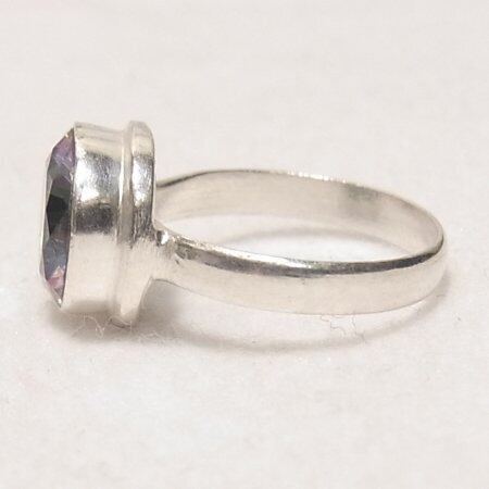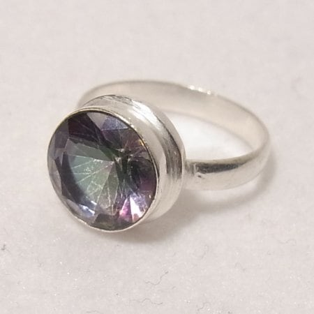 ●天然石ミスティックトパーズのリング 表面ファセットカット シルバートーンのメタル製 奥から明るいパープルやグリーンの光が放たれます ●サイズ:10 ●新品