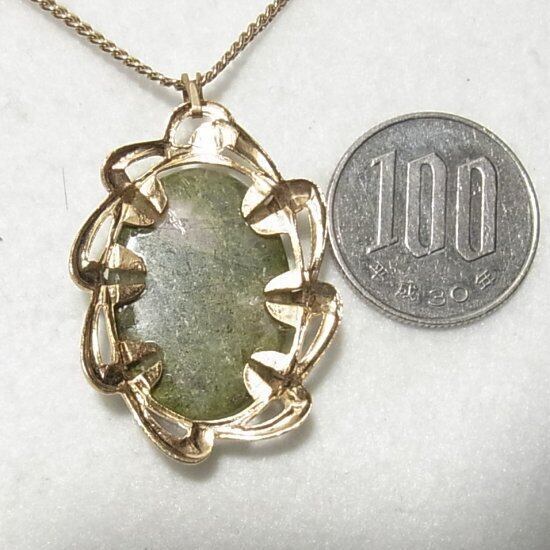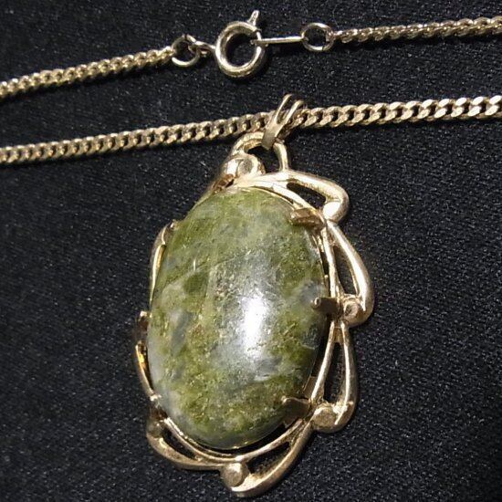 ●1980’s ●天然石、ユナカイトのペンダントネックレス ゴールドトーンのメタル製 62cmチェーン きれいです ◆年代は当店の推定です。 ◆この商品は、古い時代のビンテージアイテムです。