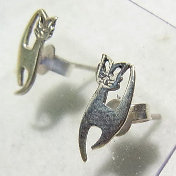 ●1990s ●刻印:925 ●シルバー925製、猫のピアス 重さ1グラム キャッチに925の刻印 オールドストック新品 ◆年代は当店の推定です。 ◆この商品は、古い時代のビンテージアイテムです。