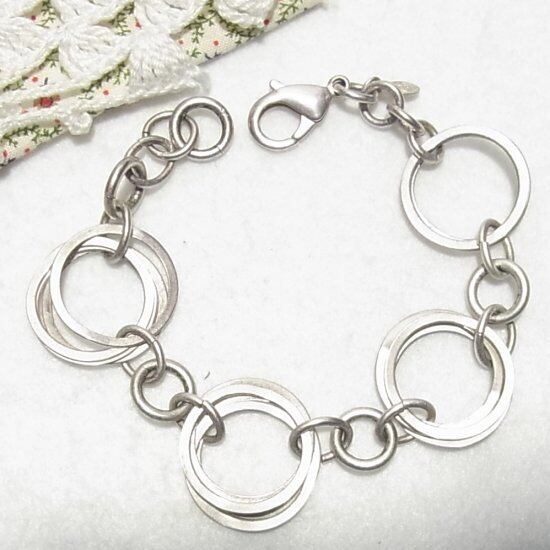 ●オールドストック新品 ●シルバートーンのサークルが連なるブレスレット ユニークでオシャレなアイテム 標準的な長さです。 ★送料は一律250円、4000円以上お買い上げで無料です。