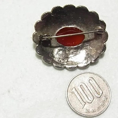 天然石、カーネリアンの付いたオーバルブローチ コスチュームジュエリーのセール通販 11386B