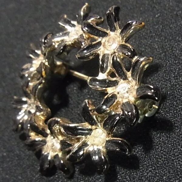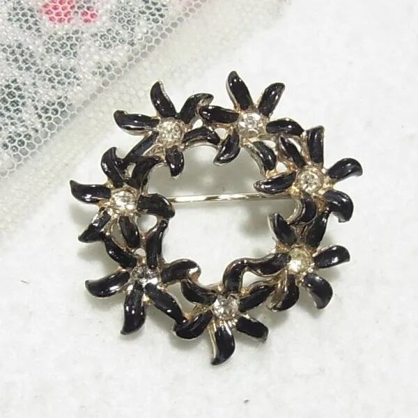 黑いフラワーサークルブローチ コスチュームジュエリーのセール通販 11387B