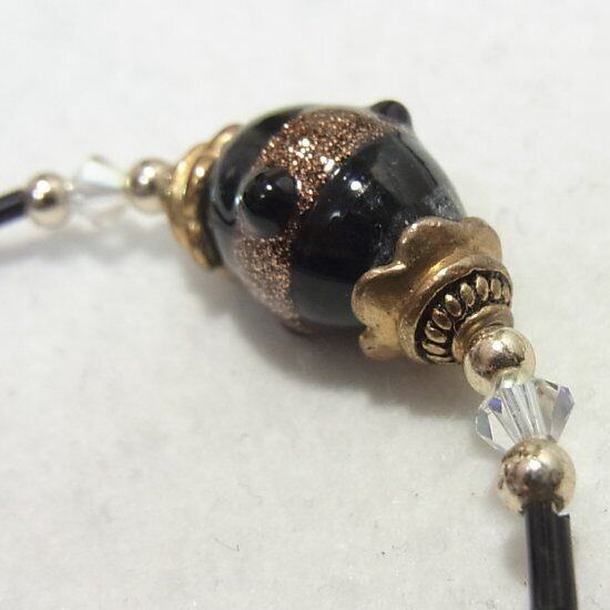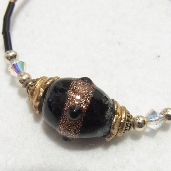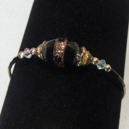●オールドストック新品 ●ストレッチブレスレット 黒基調のアートガラス クリアガラスビーズ 黒い筒ビーズ ストレッチワイヤで伸縮します 使いやすいきれいなアイテムです。