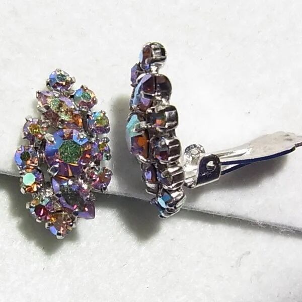 ●1970’s ●クリップ式イヤリング ●オーロラブラウンのラインストーンイヤリング 石は爪留め シルバートーンのメタル製 ハイエンドのアイテム きれいな新品状態です