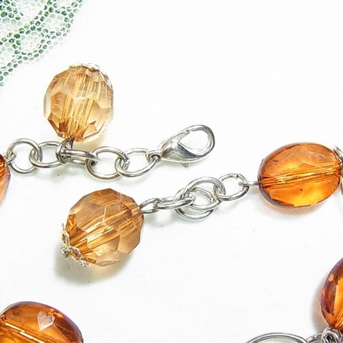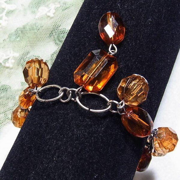 ●2000s ●茶色ビーズのチャームブレスレット プラスティックビーズ シルバートーンのメタルチェーン 標準的な長さ きれいです ◆年代は当店の推定です。
