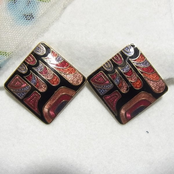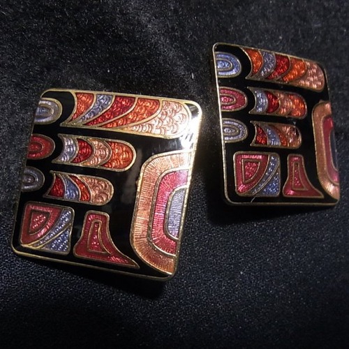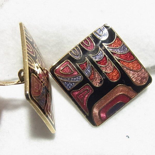 エナメル(七宝焼き)の四角いイヤリング ヴィンテージイヤリングのセール通販 10078E