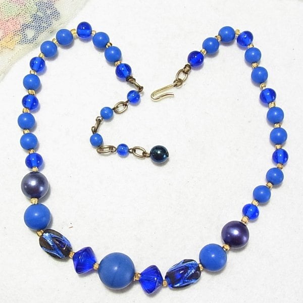 Japan ブルービーズのネックレス ヴィンテージアクセサリーのセール通販 11419N