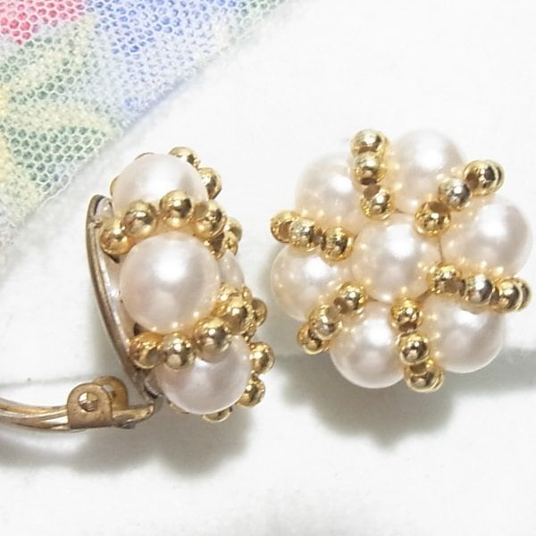 パール風ビーズのラウンドイヤリング ヴィンテージアクセサリーのセール通販 11424E