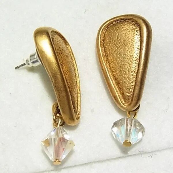 ●オールドストック新品 ●ゴールドトーンメタルにクリアガラスビーズが下がるピアス ゴールドトーンのメタル製 大人のムードのスタイリッシュなアイテムです アレルギー対応はしておりません