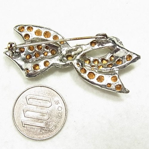 ●1990s ●クリアラインストーンのリボンのブローチ シルバートーンのメタル台 惹かれるヴィンテージムードです ◆年代は当店の推定です。 ◆この商品は、古い時代のビンテージアイテムです。
