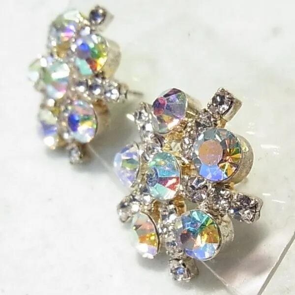●1990-2000s ●オーロララインストーンの輝くピアス シルバートーンのメタル製 エレガントなアイテム アレルギー対応はしておりません ◆年代は当店の推定です。