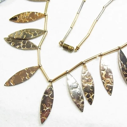 ●1980-90s ●リーフが下がるビブネックレス ゴールドトーンのメタル製 44cm オールドストック品 ◆年代は当店の推定です。 ◆この商品は、古い時代のビンテージアイテムです。