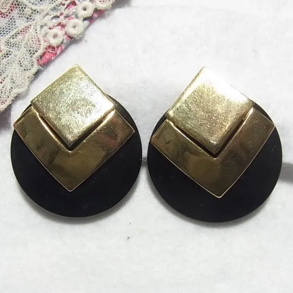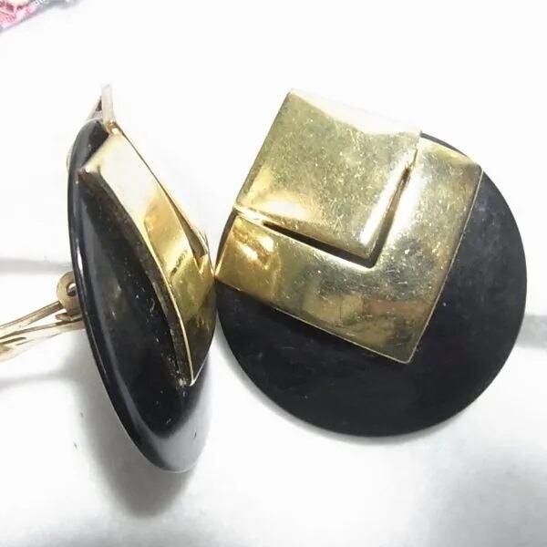 大ぶりのブラック・ゴールドイヤリング コスチュームジュエリーのセール通販 11485E