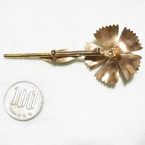 ●1960s ●エナメルのフラワーブローチ ゴールドトーンメタルにエナメルペイント 魅力的なヴィンテージムードです ◆年代は当店の推定です。 ◆この商品は、古い時代のビンテージアイテムです。