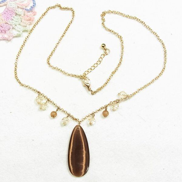 ブラウンガラスのペンダントネックレス アクセサリーのセール通販 11498N