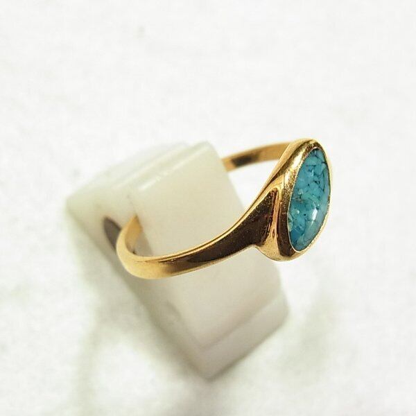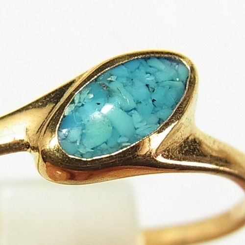 ●1990s ●ゴールドトーンメタルにトルコ石の欠片を埋め込んだファッションリング オールドストック新品 作りの良いハイソなアイテムです ◆この商品は、古い時代のビンテージアイテムです。