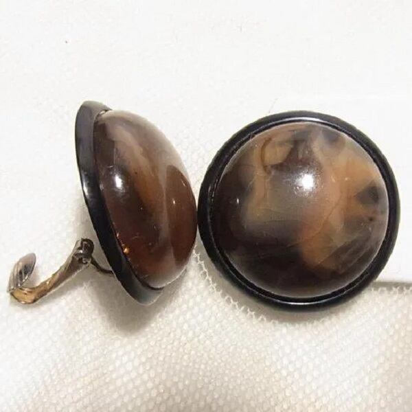 ●黒ベースにこげ茶色のまだらのドーム形イヤリング
