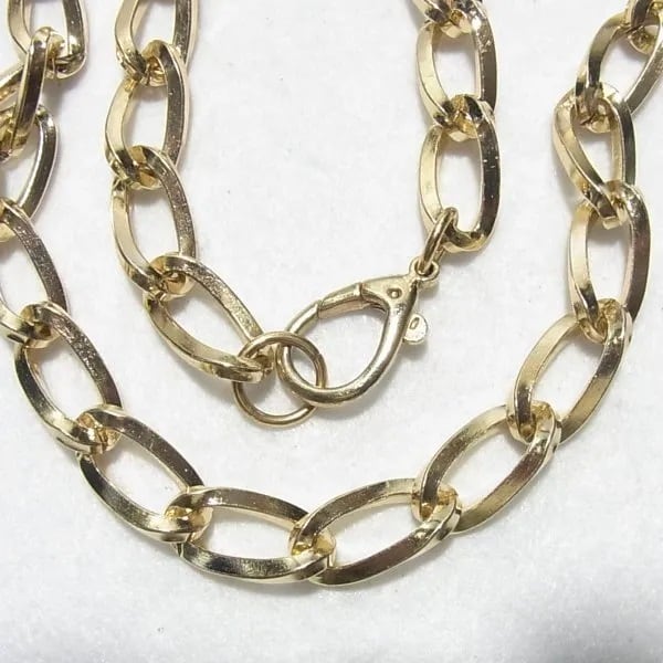 ●1990-2000s ●幅広チェーンネックレス ゴールドトーンのメタル製 61cm 幅1cm きれいなオールドストック新品 当店の品はいずれも欧米からのインポート品です