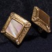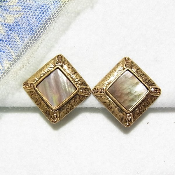 ●2000’s ●クリップ式イヤリング ●天然貝の石の四角いイヤリング ゴールドトーンのメタル台 スタイリッシュでオシャレ きれいなオールドストック新品 ◆年代は当店の推定です。