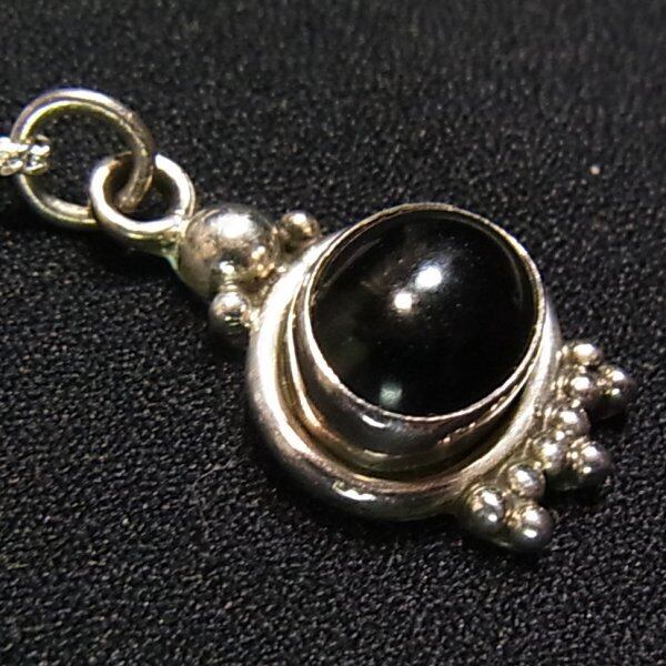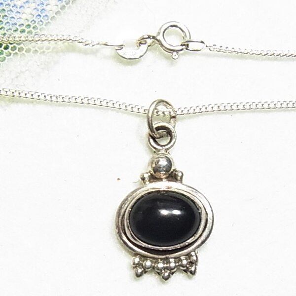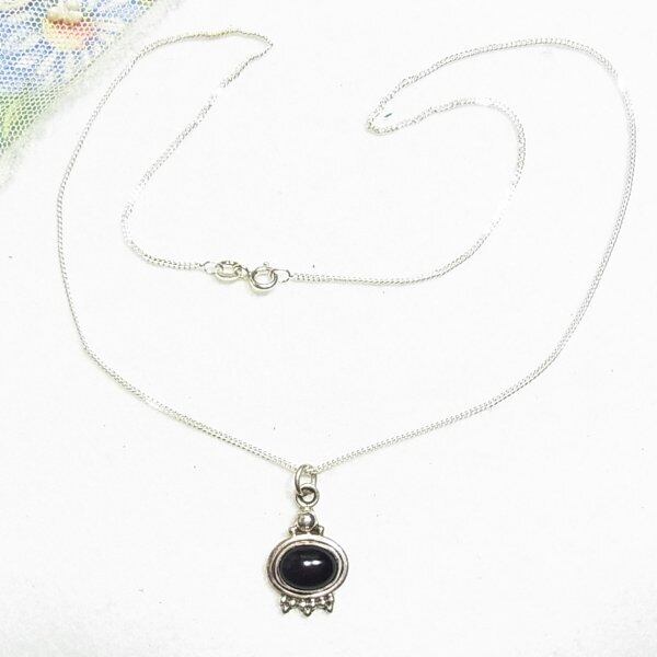 ●1990s ●刻印:925 ●シルバー製、天然石オニキスの付いたペンダントネックレス 重さ5グラム ペンダントとネックレス金具に925の刻印 オールドストック新品