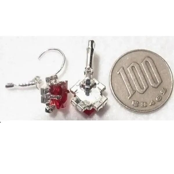 赤いガラスの石の下がるピアス アクセサリーのセール通販 11535P