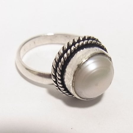 ●淡水真珠のフリーサイズリング 径が約8mmの真珠 シルバーと変わらないムードがあります。 ●サイズ:最大14くらいまでのアジャスタブル(フリーサイズ) ●新品