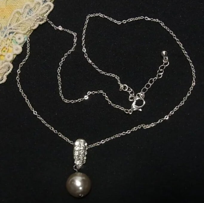 ●クリアなラインストーンと大玉ビーズのペンダントネックレス