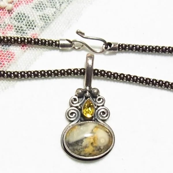 シルバー製、天然石ジャスパーの石のペンダントネックレス シルバージュエリーのセール通販 11565S