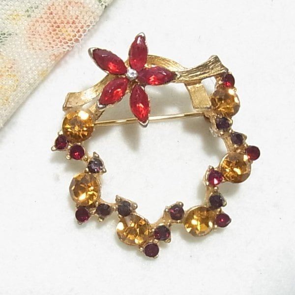 フラワーリースのブローチ ヴィンテージブローチのセール通販 10606B