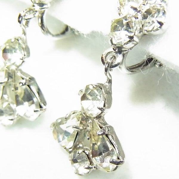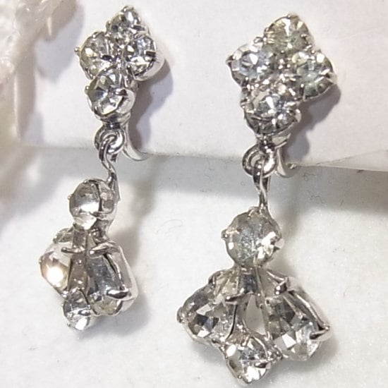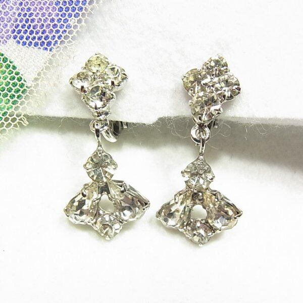 ●オールドストック新品 ●プレス式 ●クリアなラインストーンの下がるイヤリング 石は爪留め 銀色メタル 気品ある清楚なアイテムです ★送料は一律250円、4000円以上お買い上げで無料です。