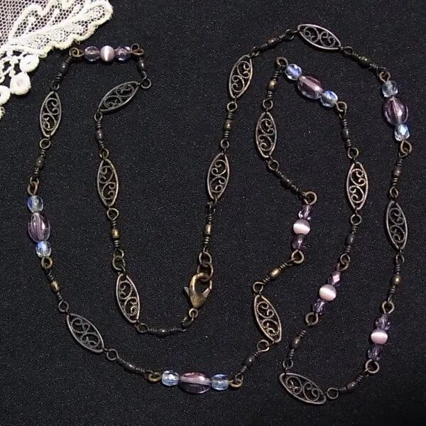 ●2000s ●黒メタルにガラスビーズのネックレス 薄紫のガラスビーズ 67cm 深みのある色合いのオシャレなアイテムです きれいなオールドストック新品