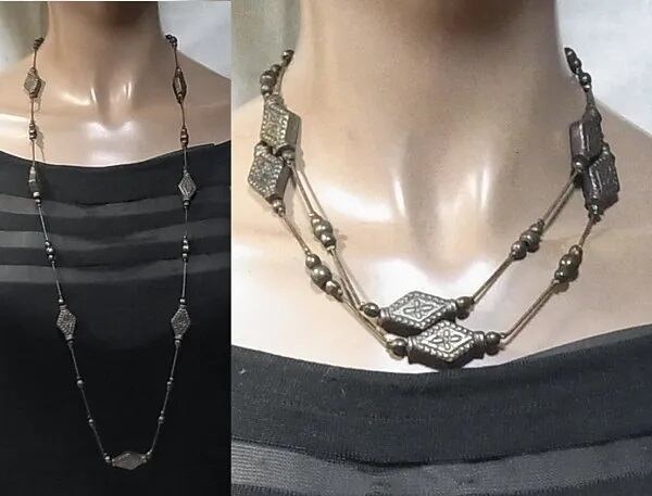●2000s ●こげ茶メタルのロングネックレス 濃いこげ茶のメタルビーズとチェーン 99cm 2回巻きでも使用できます オールドストアストック品