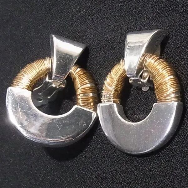 シルバートーンのメタルにゴールドトーンのワイヤーを巻いた変わったデザイン