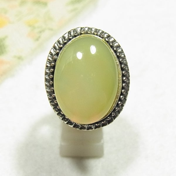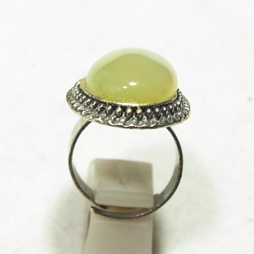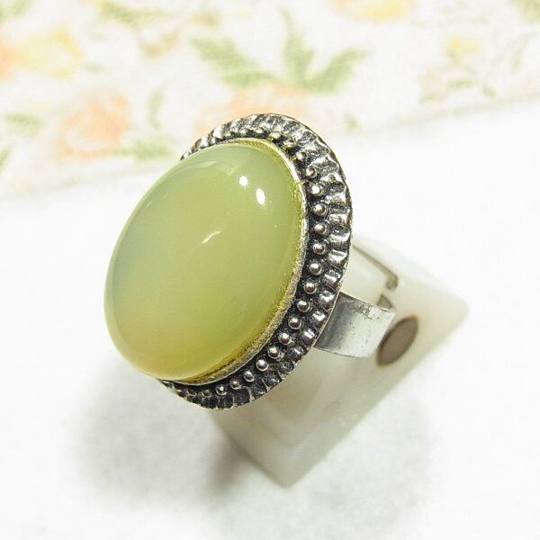 ●オールドストック品 ●うすいクリーム色のアゲート(めのう)の石のリング シルバートーンのメタル製 きれいです ●サイズ:フリーサイズ(アジャスタブル)
