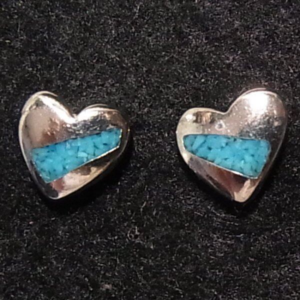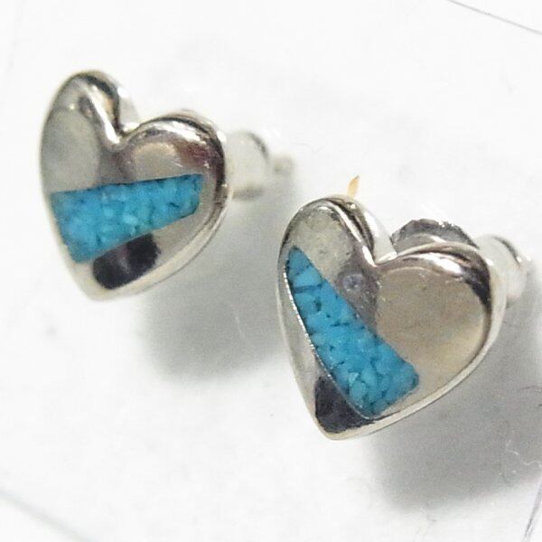 ●1990ー2000s ●ハートのピアス トルコ石のかけら埋め込み シルバートーンのメタル製 オールドストアストック品 アレルギー対応はしておりません
