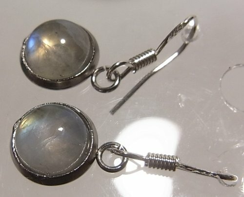 ●天然石の下がるピアス ムーンストーンのカボションの石 シルバー925のフックを使用 8mm径の石 フック以外はステンレス製 ●刻印:925(ピアスフックに刻印)