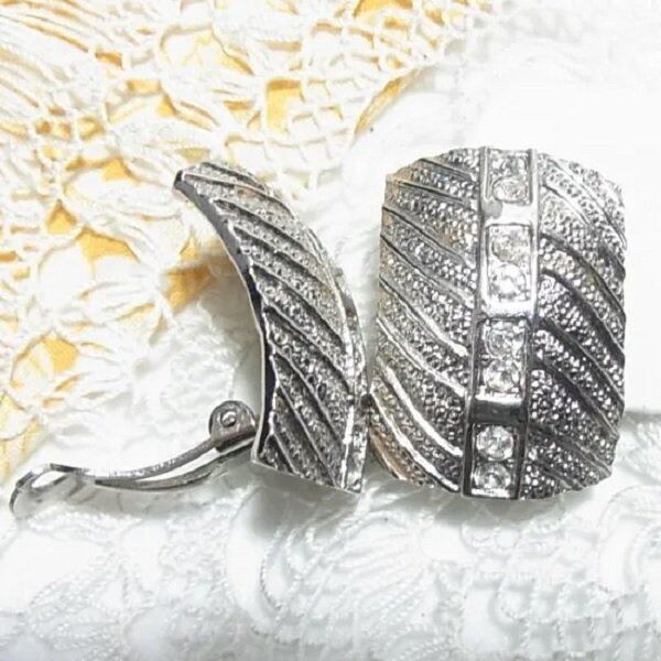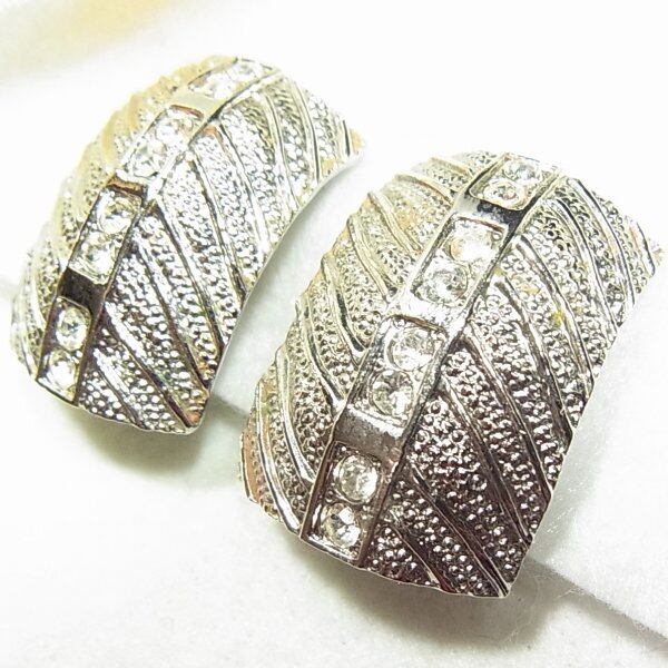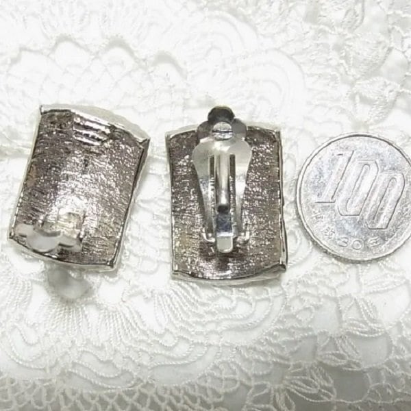 ●2000s ●クリップ式 ●長方形のイヤリング クリアなラインストーン シルバートーンメタル 比較的大ぶり 上品でオシャレなアイテムです。 ◆年代は当店の推定です。