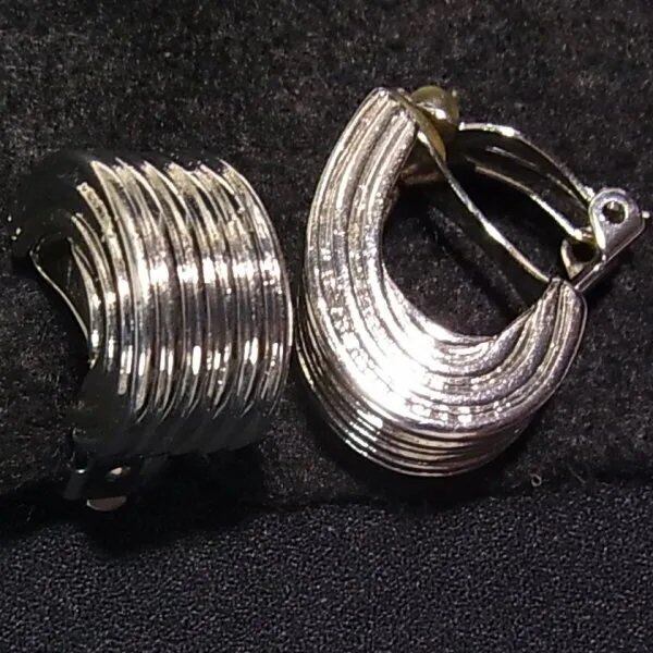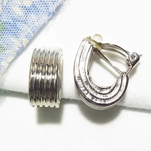 ●2000s ●クリップ式イヤリング ●シルバートーンメタルのフープイヤリング きれいなオールドストック新品 ◆年代は当店の推定です。