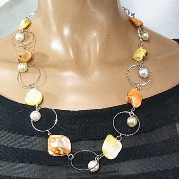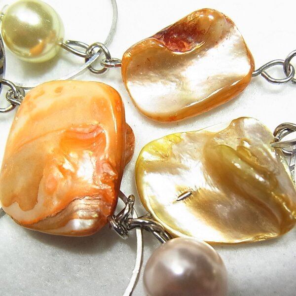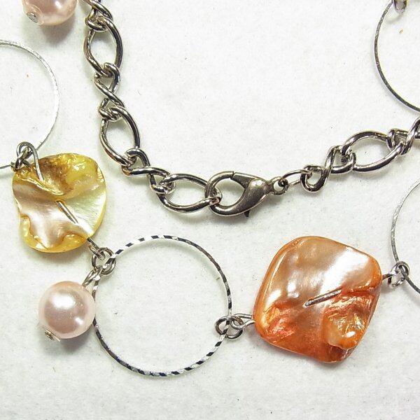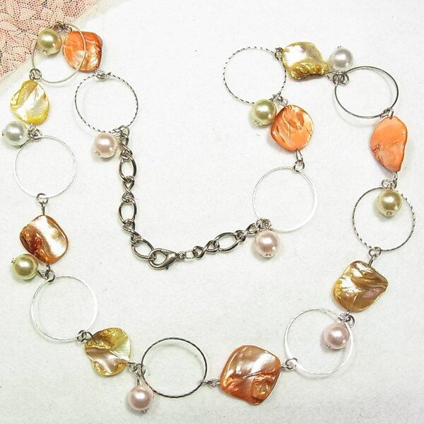 ●2000s ●天然貝(染色)のビーズネックレス 天然貝とプラスティックビーズ シルバートーンのメタル製 60~64cm オールドストック品 ◆年代は当店の推定です。